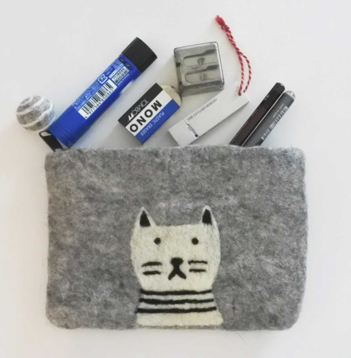 日用品 New 動物柄 フェルトポーチ|undyed+ ¥2,200(税込) フェルトのどうぶつポーチ やさしい手仕事から生まれた、どうぶつ柄のフェルトポーチ。 ふんわりとしたフェルト地に、ニードルポイントで仕上げたどうぶつの模様があたたかみを添えます。 フェルトは羊毛をもんだり転がしたりして成形するため、縫い目がなくクッション性も◎ 携帯や小物入れ、ペンケースとしても使いやすいサイズです。 内側にはコットンの裏地付き。 見た目も使い心地も、ほっこりやさしいポーチです。 ■製造国・地域:ネパール ■原材料・素材:ウール100% (中面:コットン裏地グレー/チャック付き) 店舗限定商品です