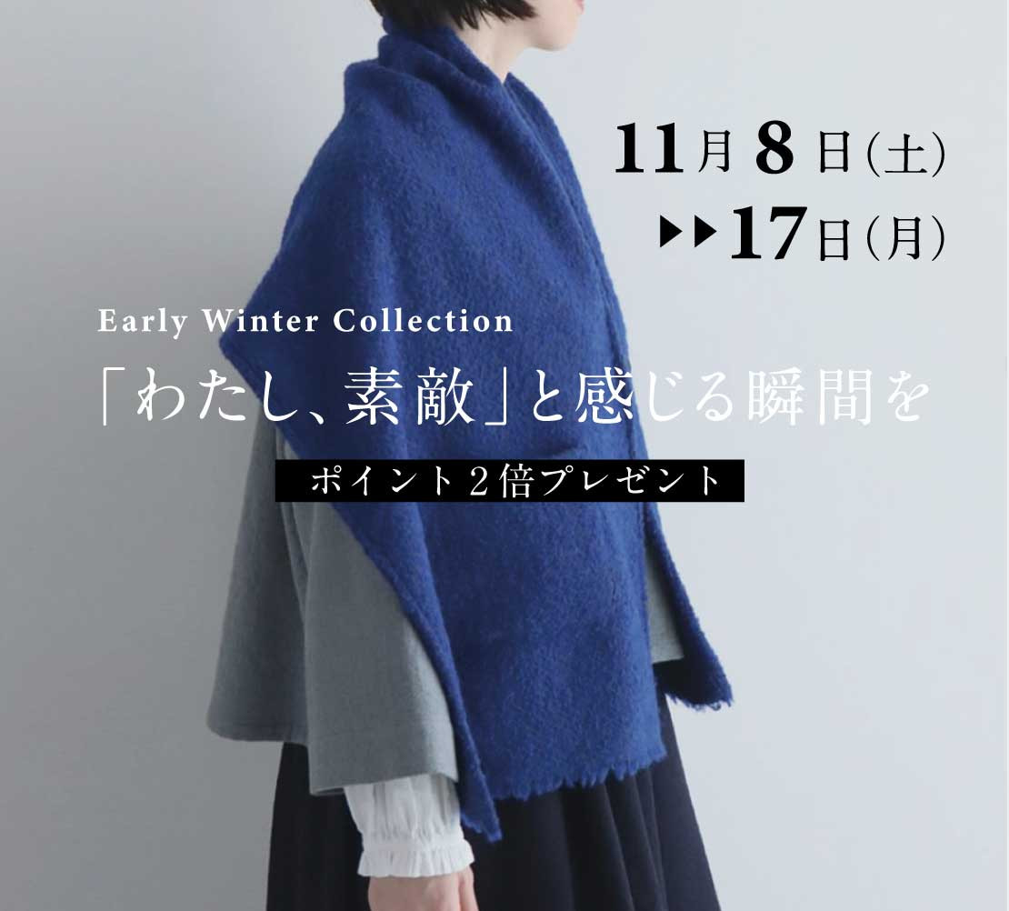 11月8日(土)〜11月17日(月)まで 秋冬の洋服フェアを開催いたします。 期間中は、お洋服をお買い上げの方にポイント2倍の特典をご用意しています。