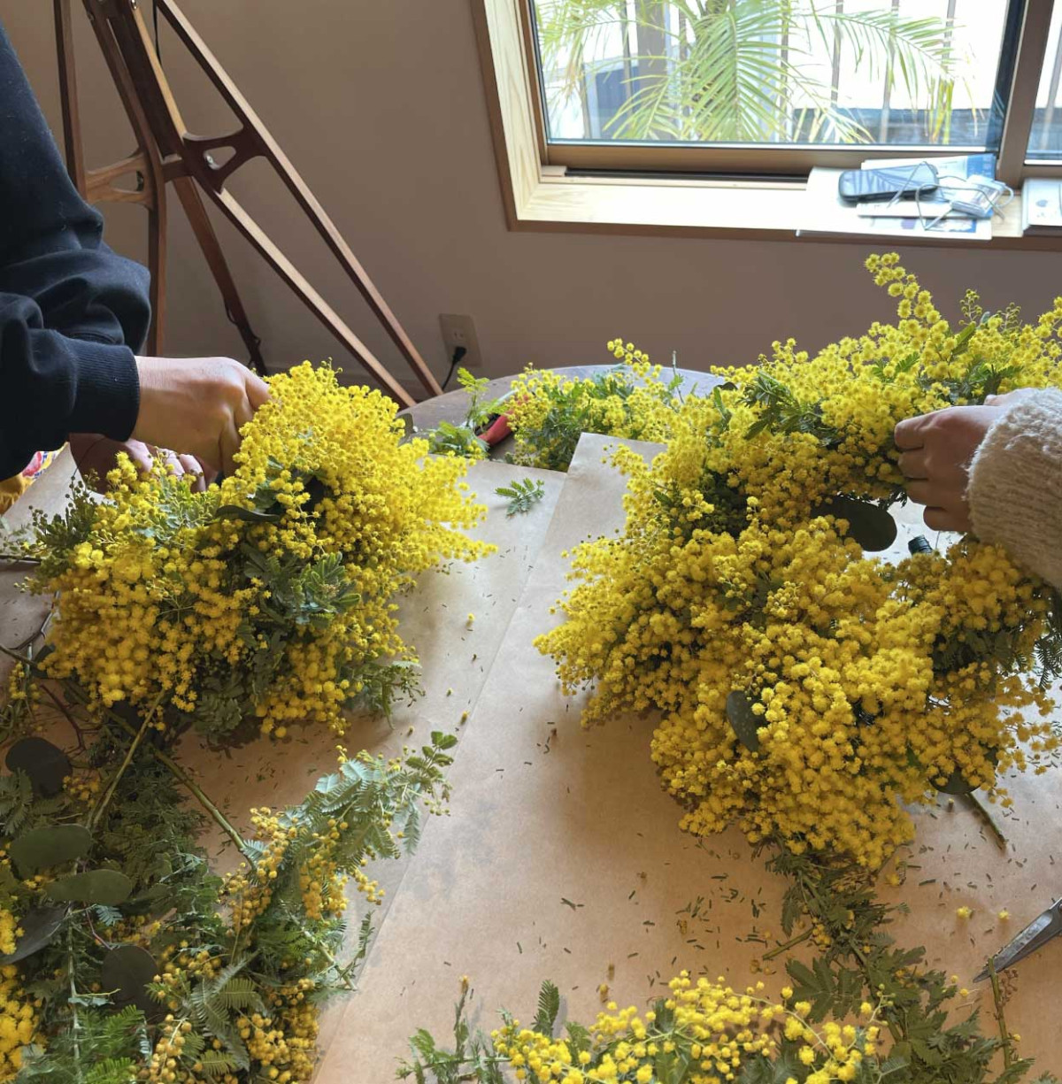 昨年ご好評いただいたミモザリース作りを、