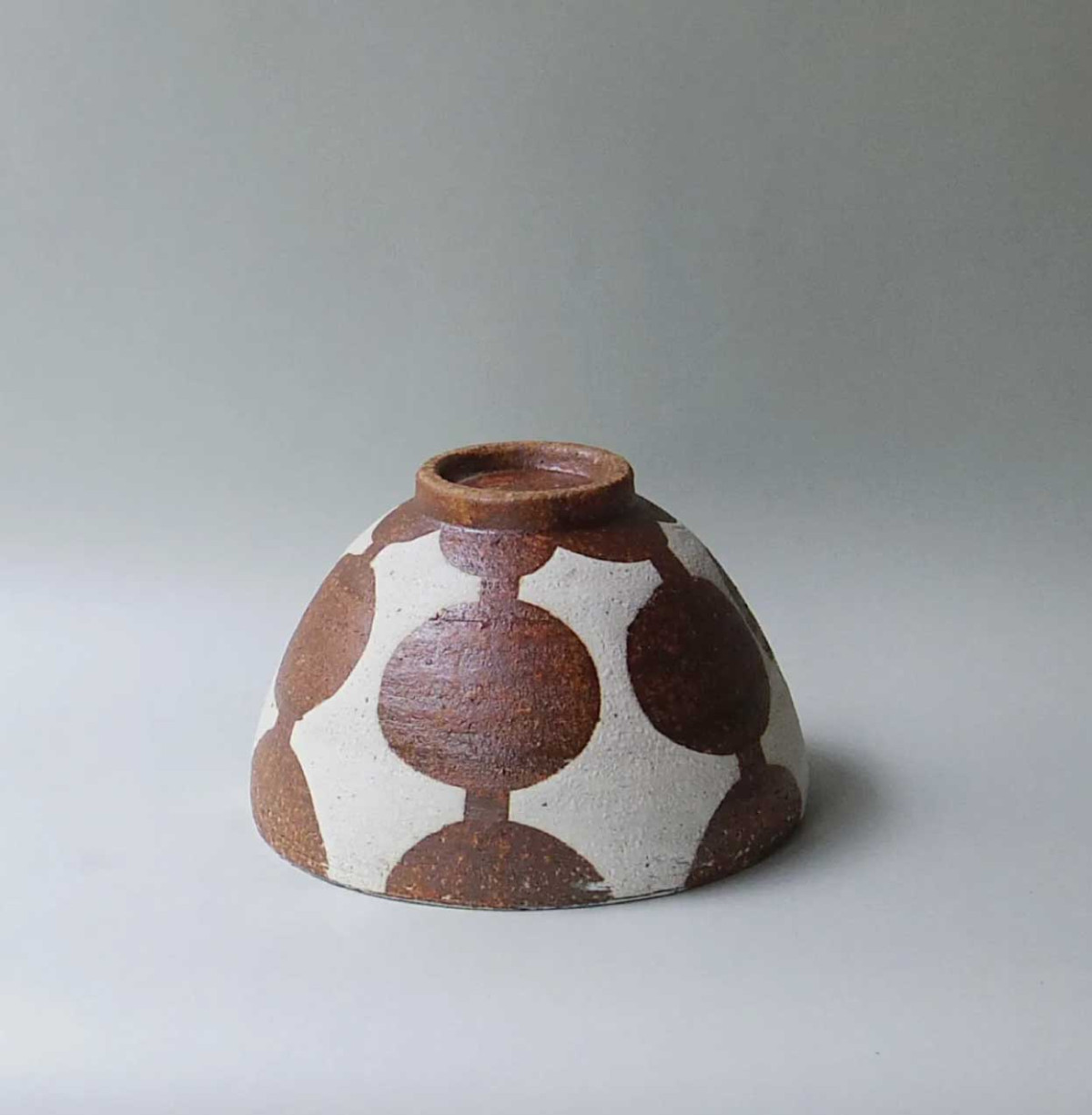 思わずうどんや蕎麦を作りたくなる、食べたくなる温かみあふれるどんぶり。どっしりと安定感のある形に、手作業で伝統的な技法で大胆なデザインを施しています。赤土に撥水剤で柄を手描きし、白化粧をかけることにより、赤土の部分が茶色く紋様として出てきます。 内側は白い釉薬をかけており、土から出る空気と反応して「御本手」と呼ばれるほのかなピンク色が現れます。