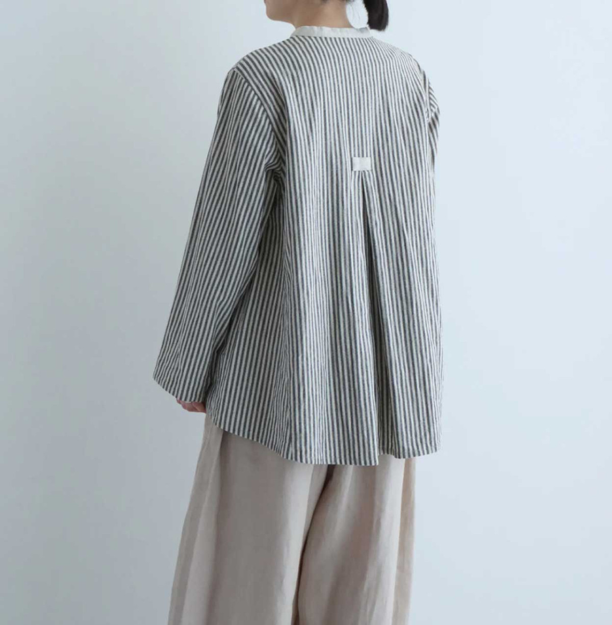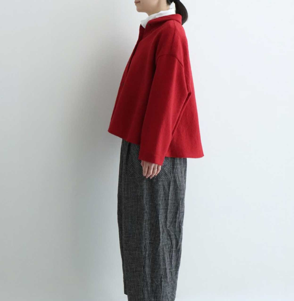とても軽くて暖かな、ゆったりシルエットのウールガーゼブラウス。台衿と袖口の内側には、肌にやさしい綿素材を合わせており、心地よい着心地です。
